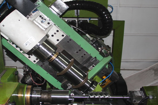 機(jī)床砂輪架上安裝有兩個(gè)CBN砂輪部件,分別完成轉(zhuǎn)子槽的粗/精磨削,砂輪架可沿軸向移動(dòng),使CBN砂輪移動(dòng)至對(duì)應(yīng)的磨削工位。通過(guò)對(duì)工件的粗磨及精磨,是一種大幅提高螺桿/螺旋轉(zhuǎn)子工件齒型型線各項(xiàng)精度指標(biāo)的先進(jìn)工藝方式。